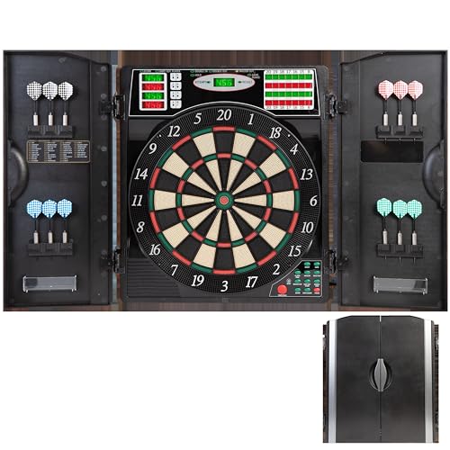 This dartboard also featuring with 32 games and 300 plus options that make this more interesting. Bright colors LCD that gives you a clear view of scoring. 8 players can easily play with this dartboard. Eliminating manual score keeping and handicap scoring options.
