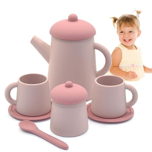 With play this set she has an ability to pour tea in one or two cups. She celebrate there parties and imagination that they pour some tea in it. It is easily clean and dry. .Almost 4 year old baby can play this tea set it has two cups .The cups have small holes witch are also to prevent for suffocation.